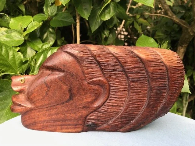 The lady is carved from a hardwood from southern Mexico. I used a hammer and chisel, no sandpaper necessary!
